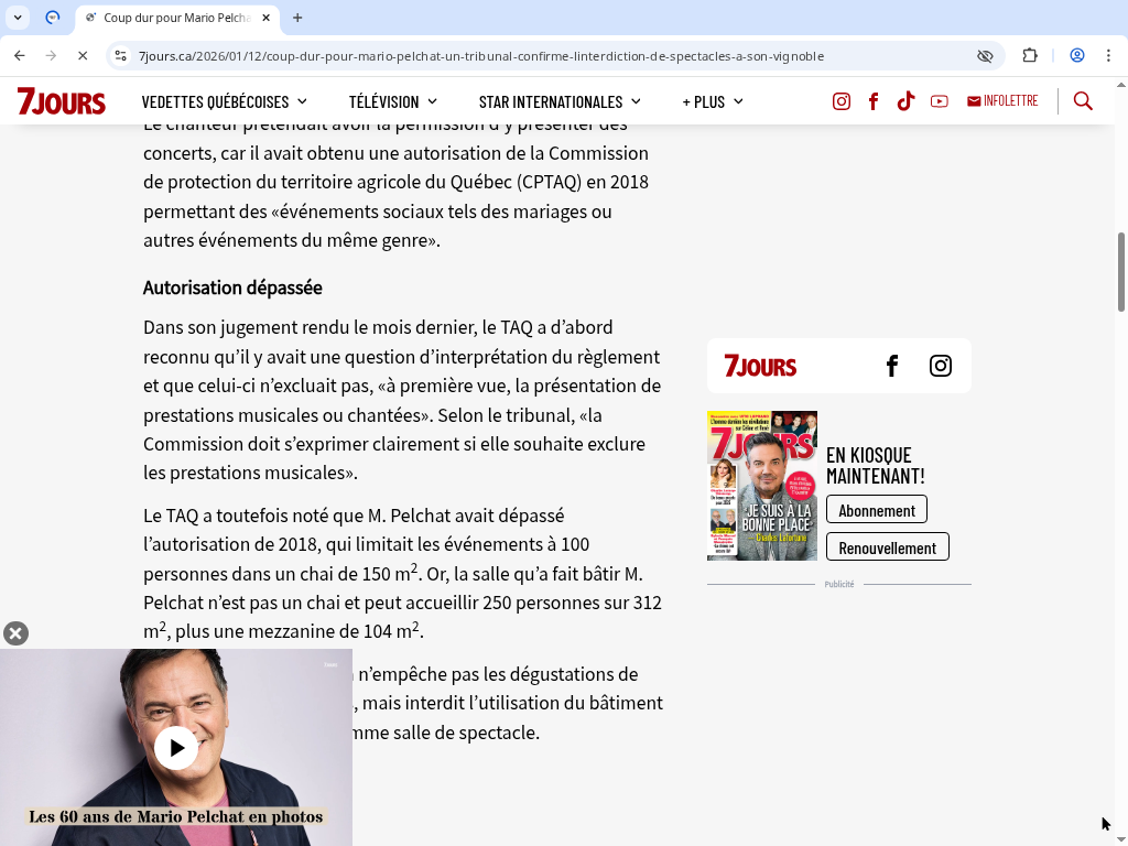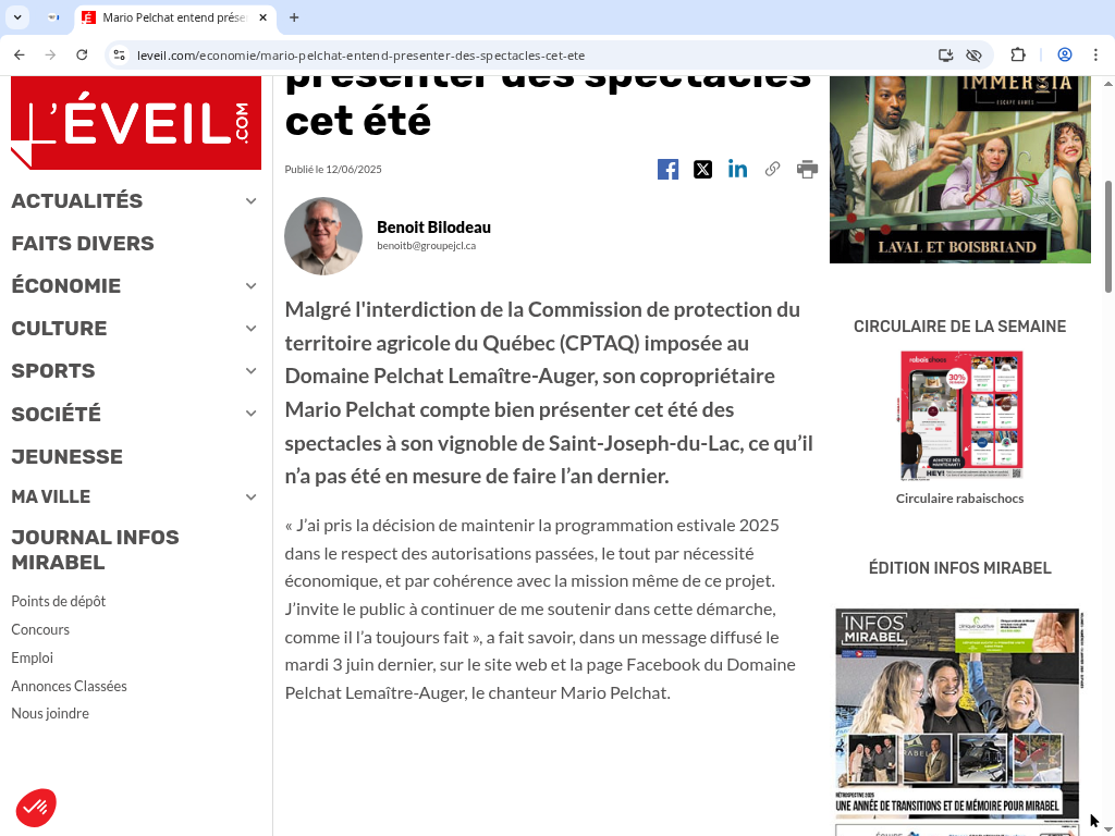 Le tribunal constate aussi que le lien entre les spectacles et l’activité agricole est trop ténu. Mario Pelchat se voit donc interdire définitivement d’y tenir des shows à moins de se plier à la réglementation… ou de déménager son concept hors de la zone agricole.